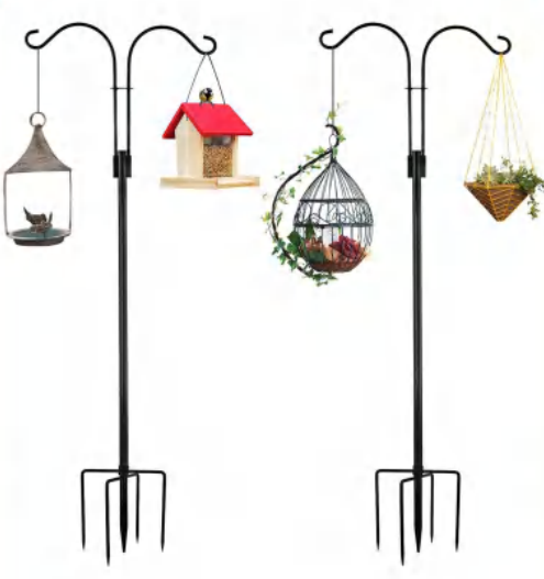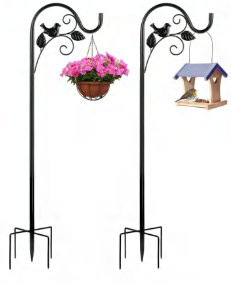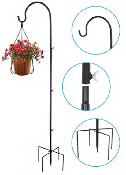 • Stable, weighted design ensures firm anchoring, even when holding heavy items like large flower baskets, bird feeders, or solar lanterns